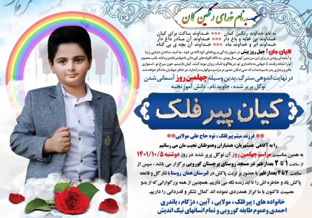 ali_naseri's tweet - "دوشنبه ۵ دی مراسم چهلم كيان_پيرفلک است. مهسا_امینی اعتص