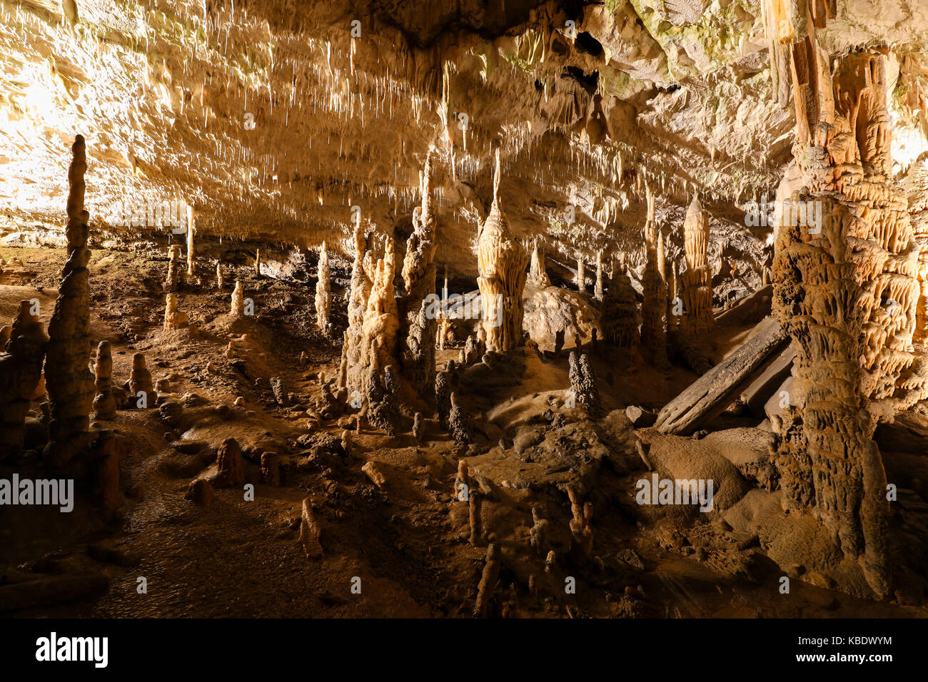 Stalactites and stalagmites in an underground cavern - Postojna cave, Slovenia,