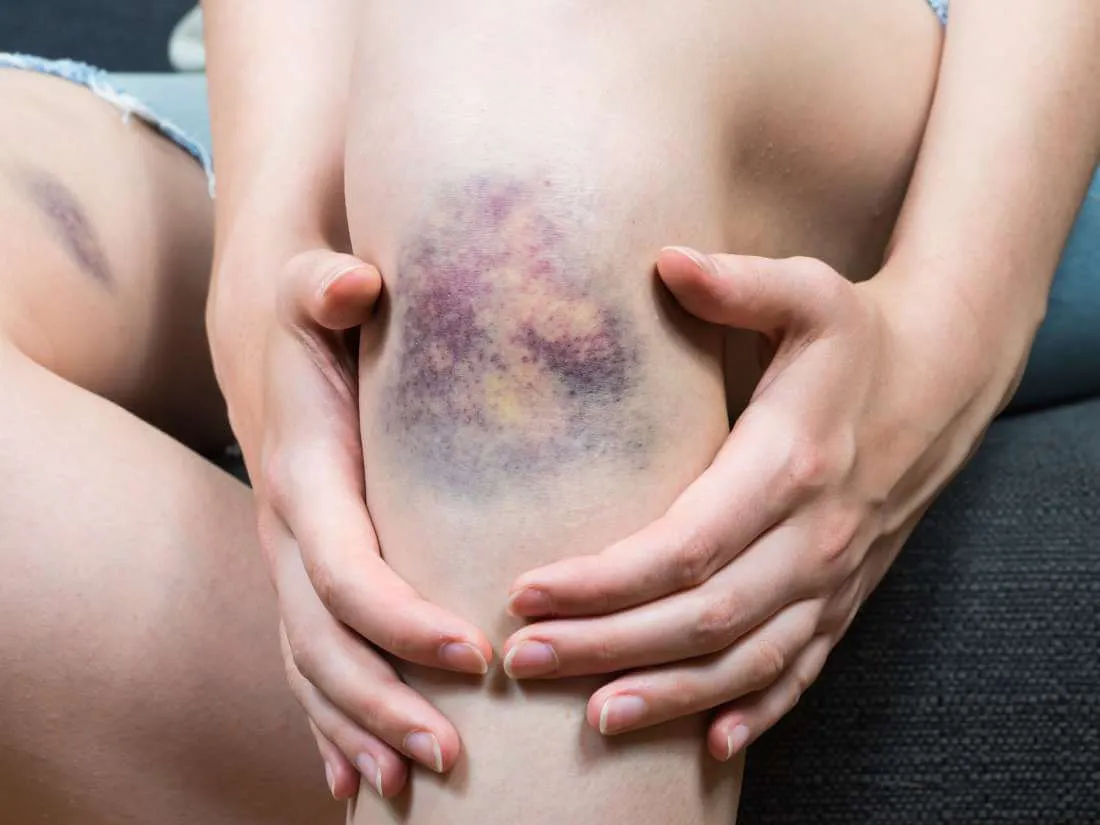 синяк на ноге женщины у девушки синяк на ноге от несчастного случая и использова
