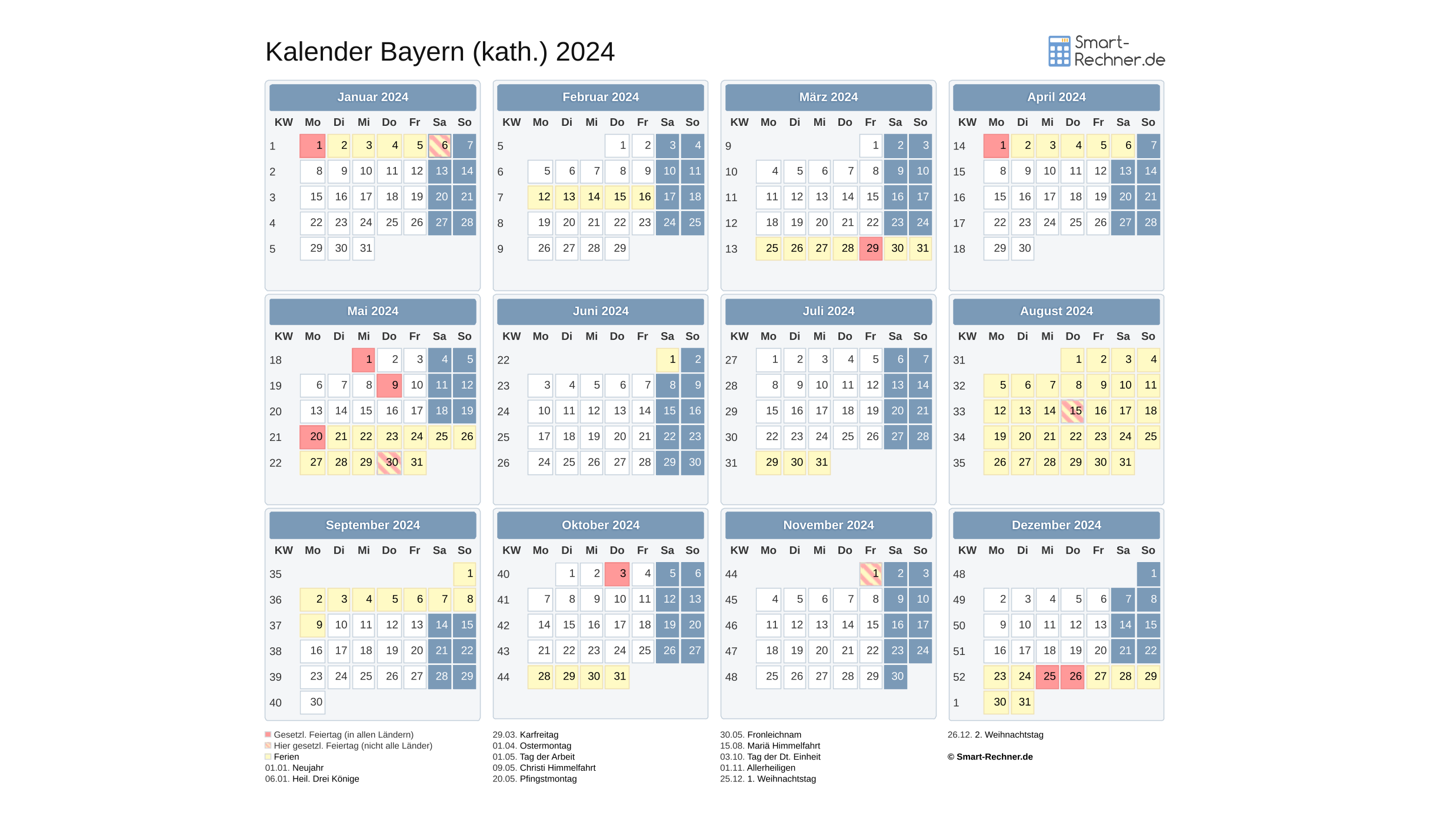 Jahreskalender Bayern 2024