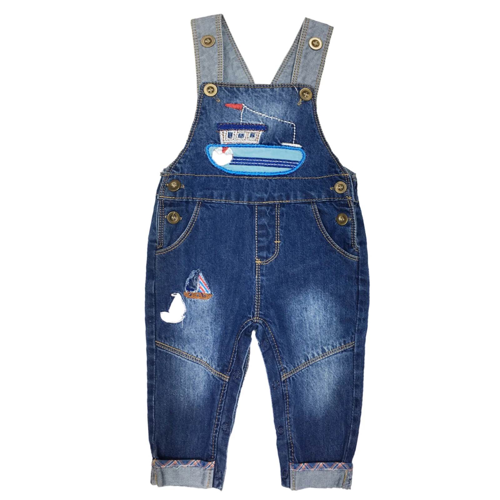 KIDSCOOL SPACE Baby Boys Easy Diaper Changing Ship Embroidered Soft Jeans Overal