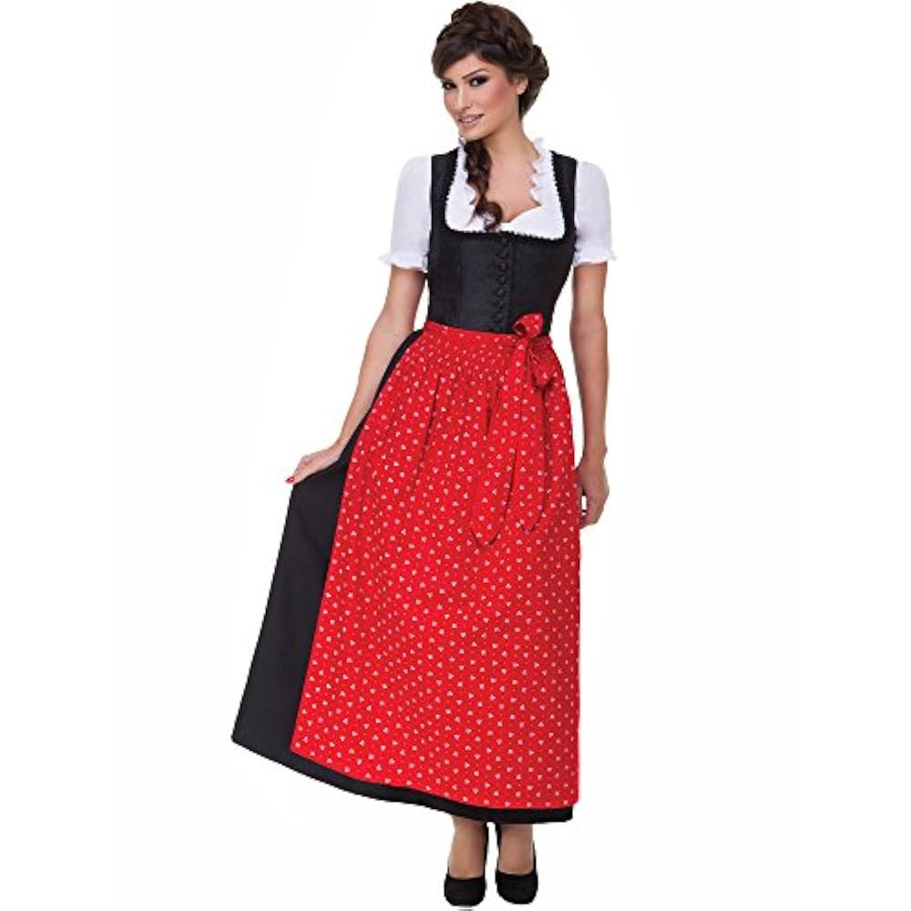 Купить дирндль Almbock Almbock Langes Dirndl Uschi schwarz mit roter Schürze in
