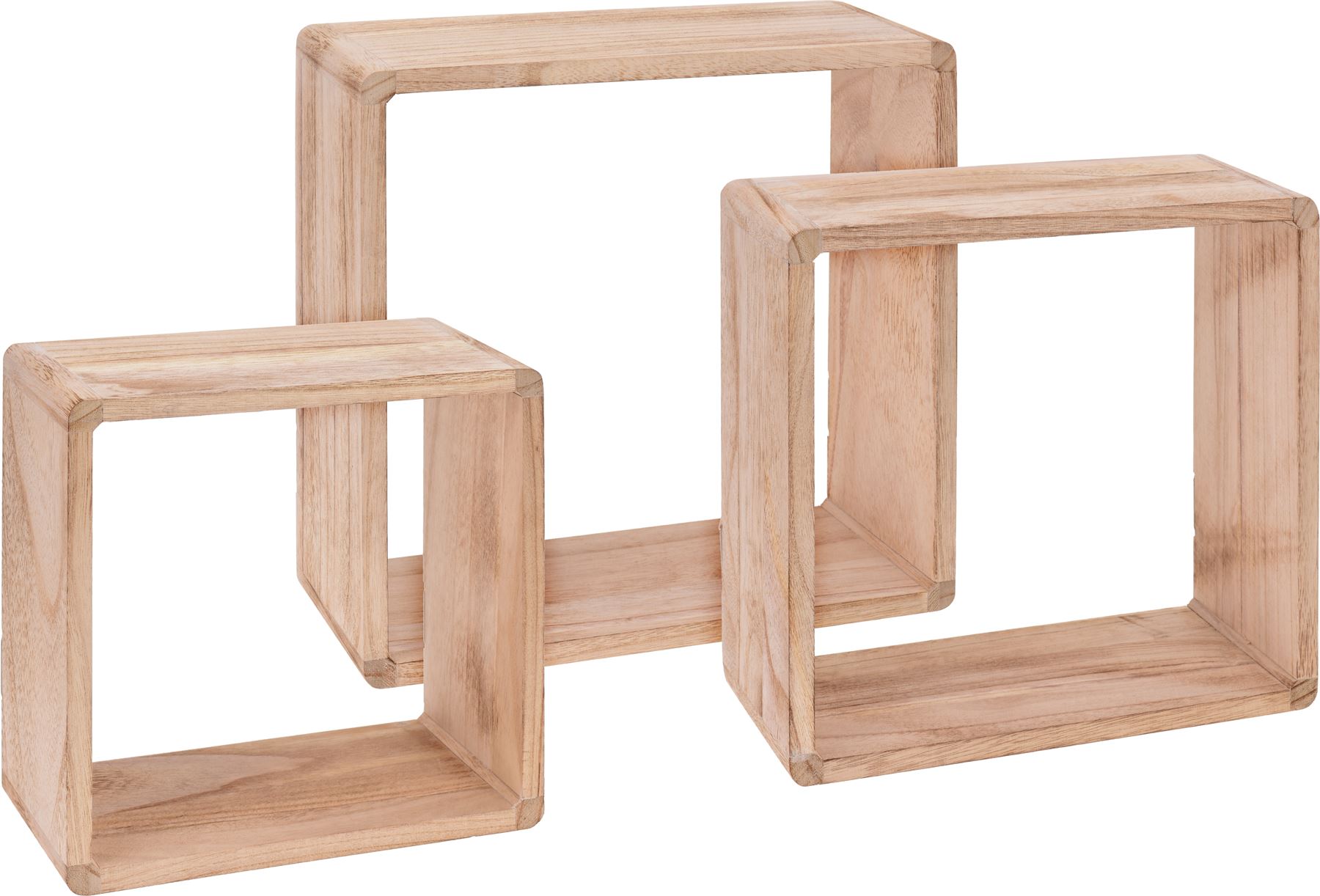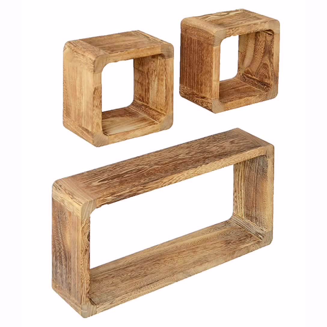 3er Set Regal-Cube 44x35cm Holzregal Holz Board Used-Design Würfelregal Natur