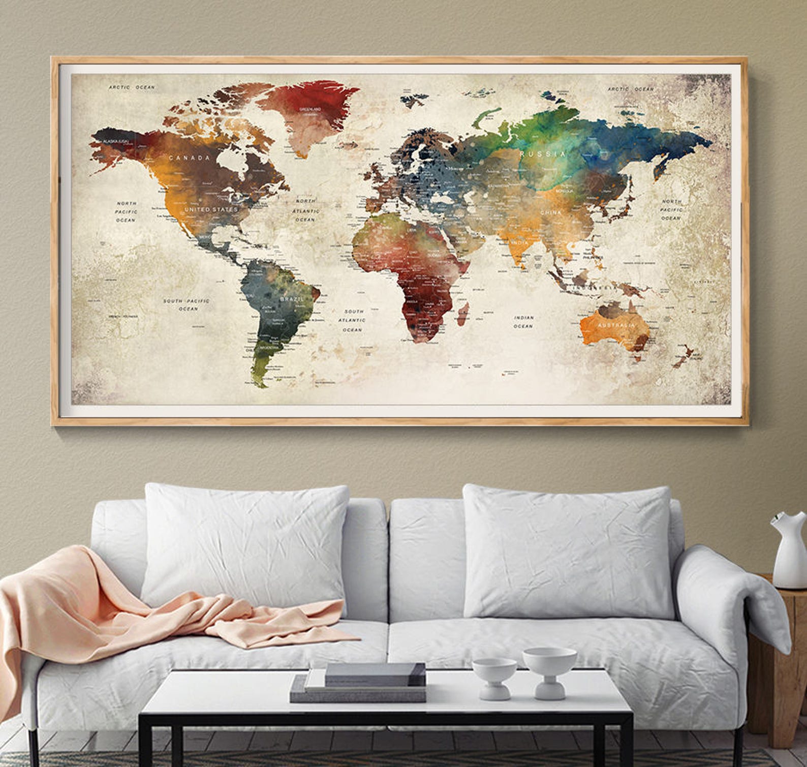 World map watercolor earth picture print wall decoration Etsy